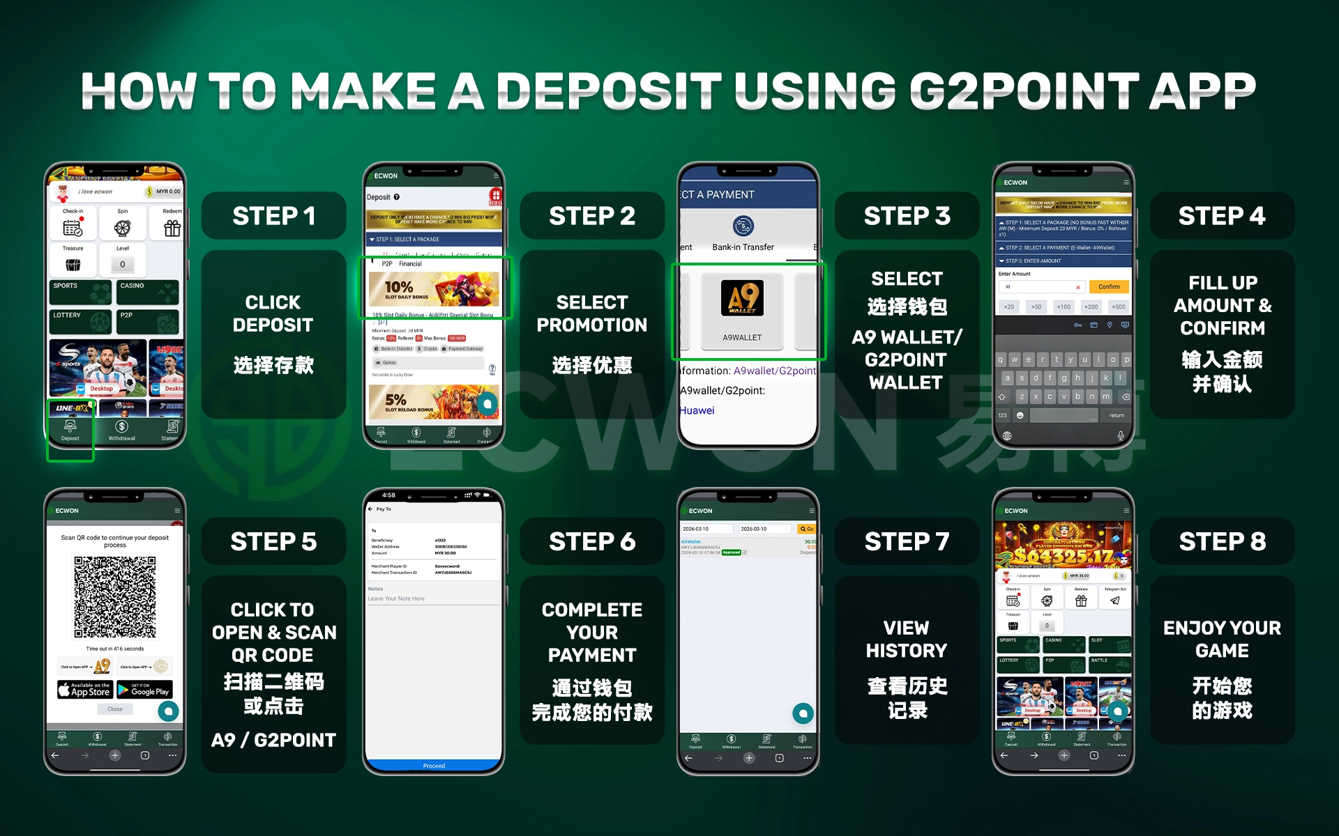 Please follow these steps to make a deposit :