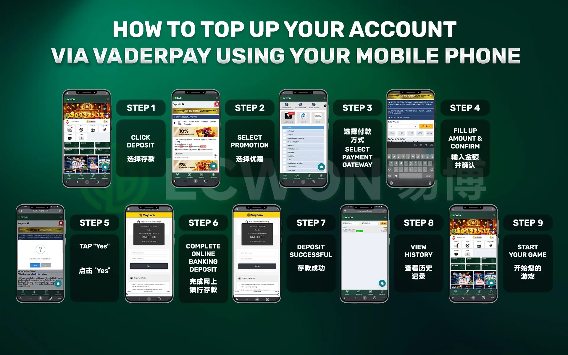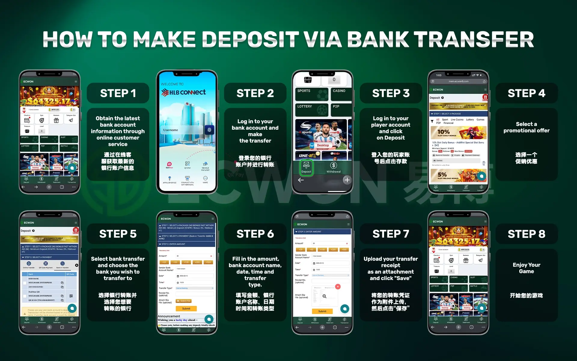 Please follow these steps to make a deposit via mobile phone :